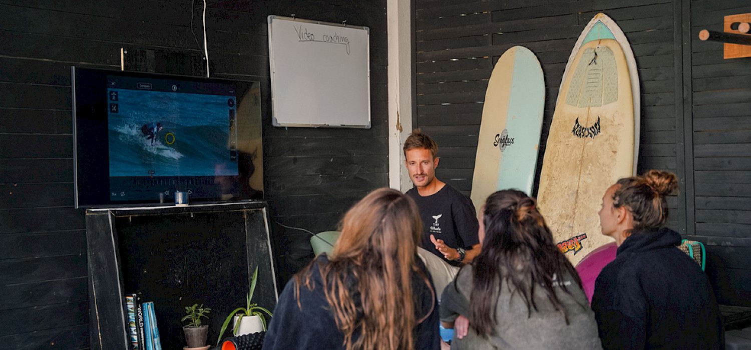 Some surfers spend years frustrated, not because they lack talent, but because they don’t fully understand how surfing works. How a wave breaks. How to read the forecast. What board to use for what. Where to sit. When to shift weight. Why your board responds (or doesn’t). A little theory goes a long way. Good coaching now includes land-based workshops that break all this down, in plain English. No fluff, just the info that makes things click.